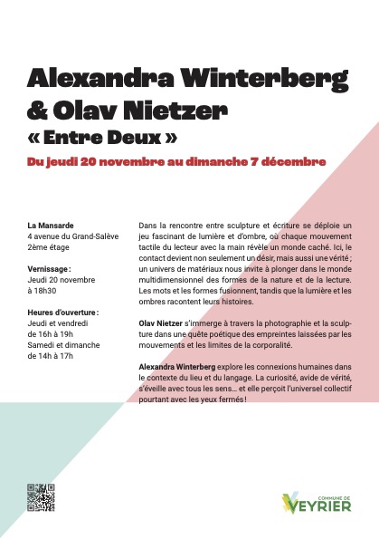 Entre deux – Alexandra Winterberg & Olav Nietzer 20.11.2025 - 07.12.2025 La Mansarde, av. du Grand Salève 4, Veyrier