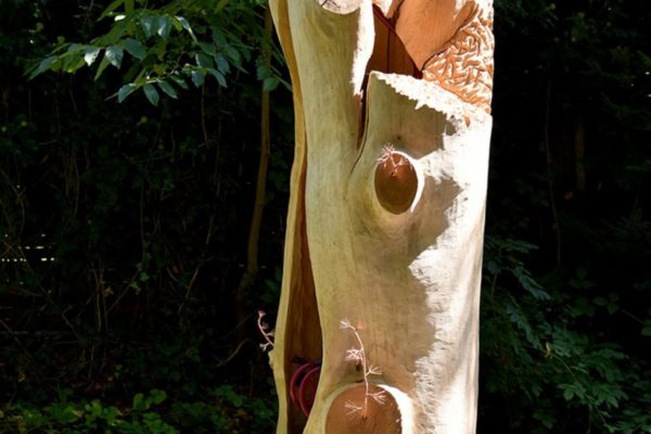 Une formation de géographe et des années d’enseignement m’ont permis de développer l’intérêt que j’ai très tôt porté à la complexité des rapports qu’entretiennent les sociétés humaines avec leur environnement. Après l’étude et la transmission académique de ce champ de connaissances, j’ai ressenti le besoin d’en exprimer quelques facettes d’une manière plus intuitive. Cette envie m’a tout d’abord assez directement amené à chercher comment matérialiser ma fascination pour la toute puissance des forces tectoniques qui modèlent la surface de la Terre. J’ai ainsi, pendant quelques années, évoqué leur action par des strates et ondulations taillées dans le bois de bas-reliefs colorés.